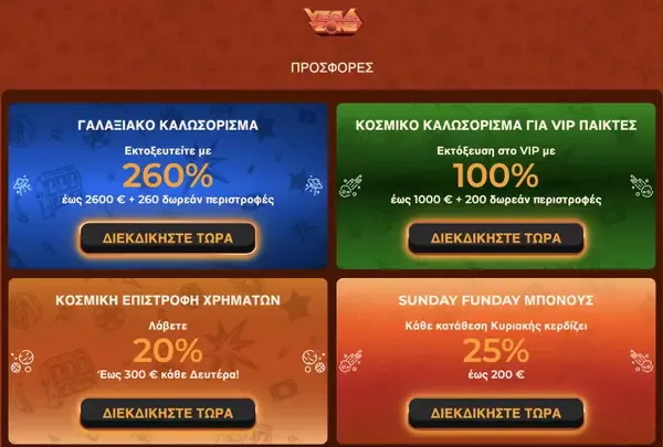 | Galactic Welcome (4η) | €20 | 45x (Κατάθεση + Μπόνους) |