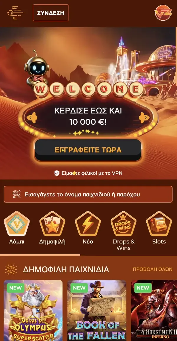 Η mobile πλατφόρμα μας χρησιμοποιεί καθαρή διάταξη με ένα απλό επάνω μενού και σαφείς ενότητες lobby, ώστε να μεταβαίνετε από τα παιχνίδια στις πληρωμές χωρίς περιττά clicks. Η μπάρα αναζήτησης σάς βοηθά να βρίσκετε γρήγορα συγκεκριμένους τίτλους, ενώ τα πλακίδια κατηγοριών κρατούν τις βασικές περιοχές εύκολα προσβάσιμες. Αν παίζετε συχνά, μπορείτε να χρησιμοποιείτε τα αγαπημένα για να επιστρέφετε στους ίδιους τίτλους χωρίς να περιηγείστε κάθε φορά σε όλο το lobby. Αυτό βοηθά όταν θέλετε την ταχύτητα μιας VegaZone εφαρμογή για κινητό ενώ παραμένετε στον browser.